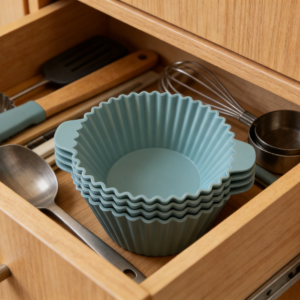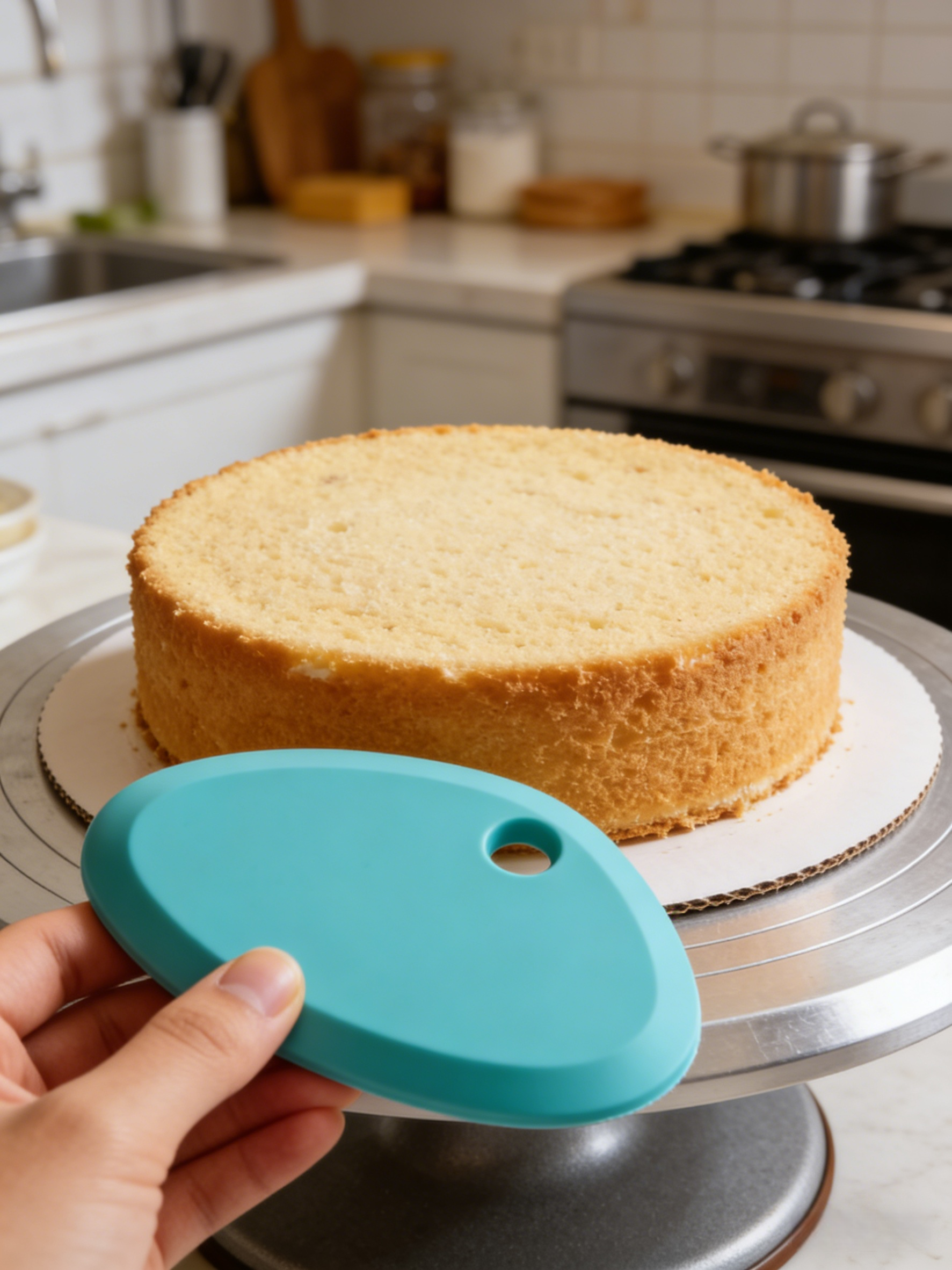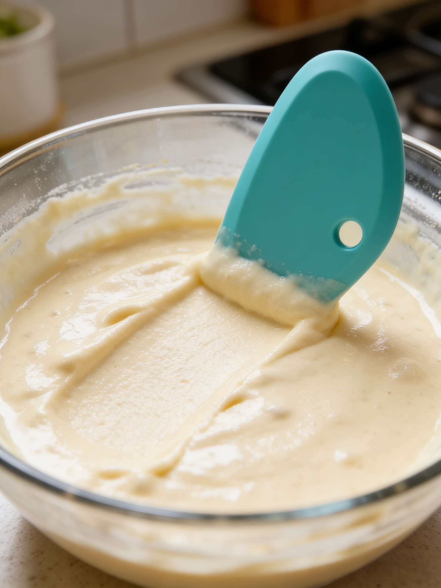 A flexible silicone baking scraper, designed for easy dough handling, bowl scraping, and kitchen cleanup.