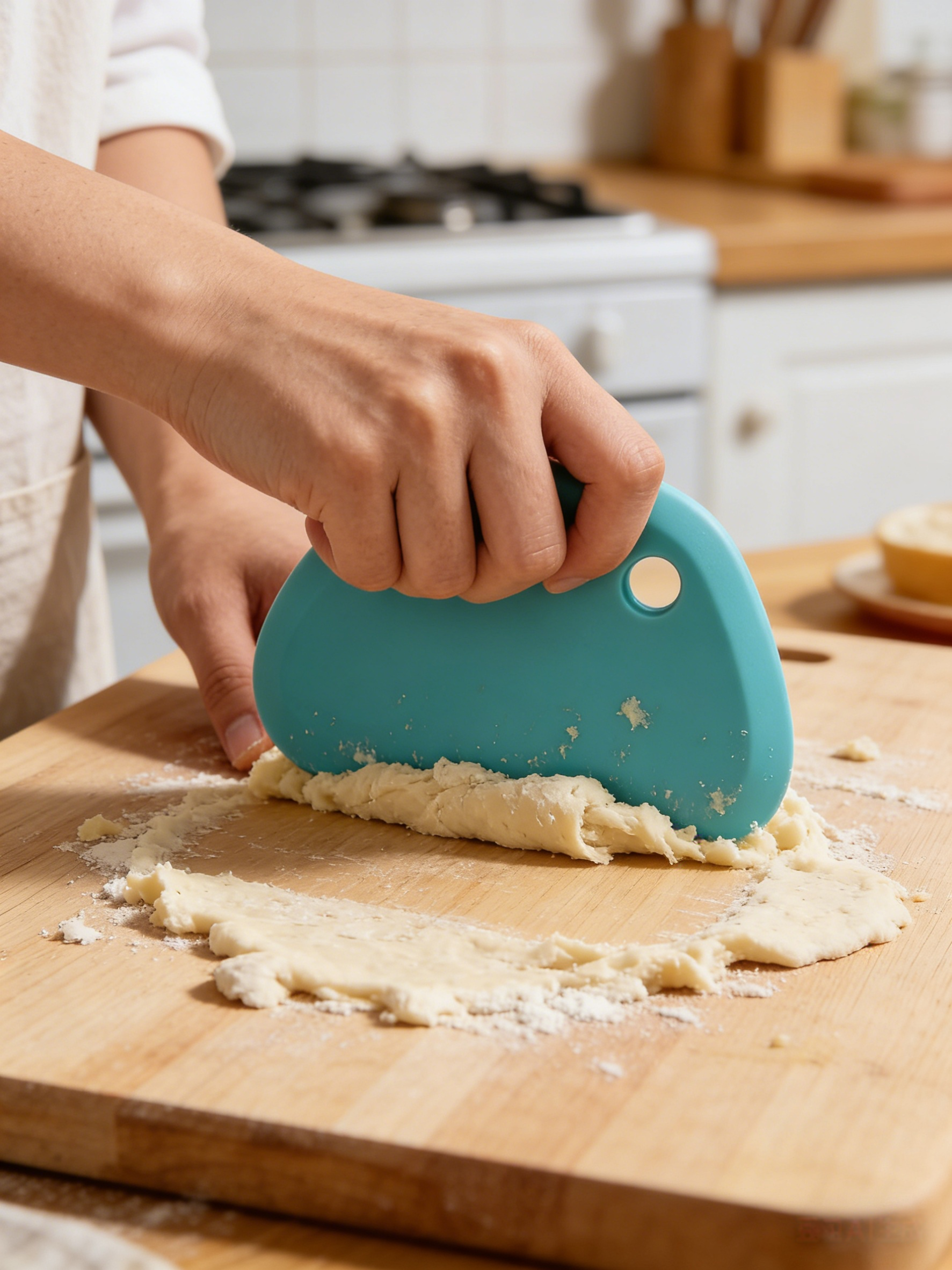 2.Flexible and durable design for efficient dough cutting and bowl scraping.