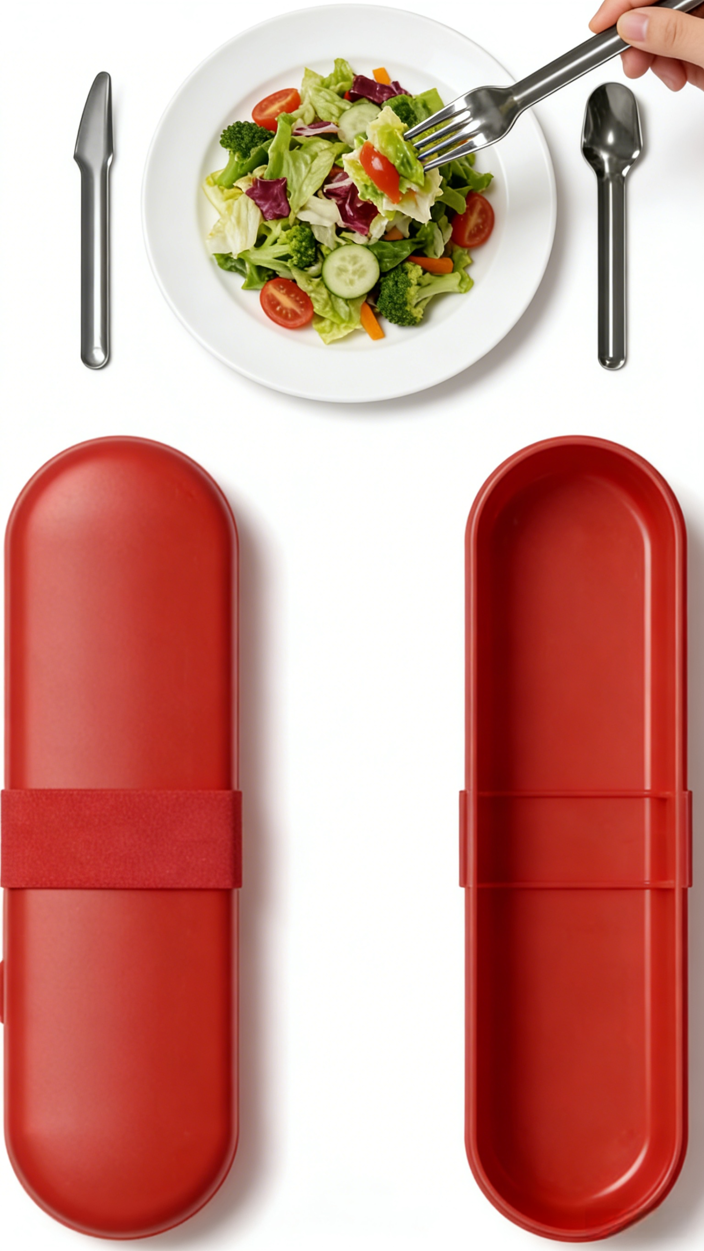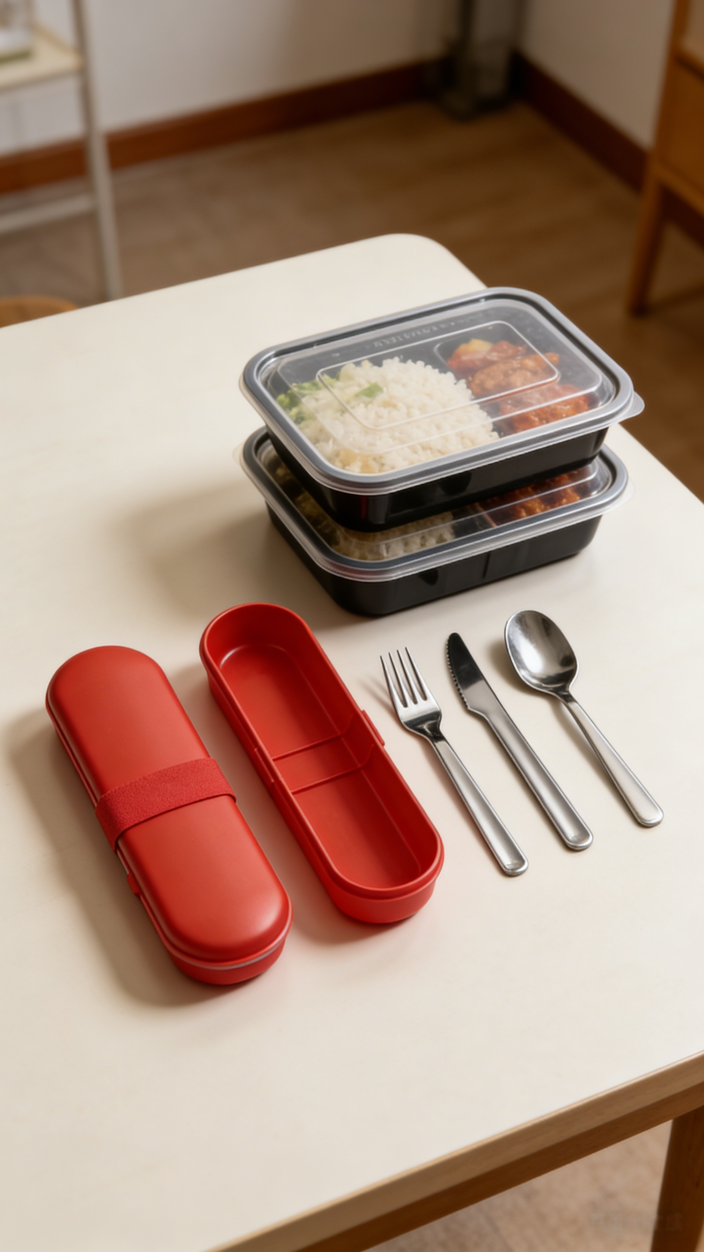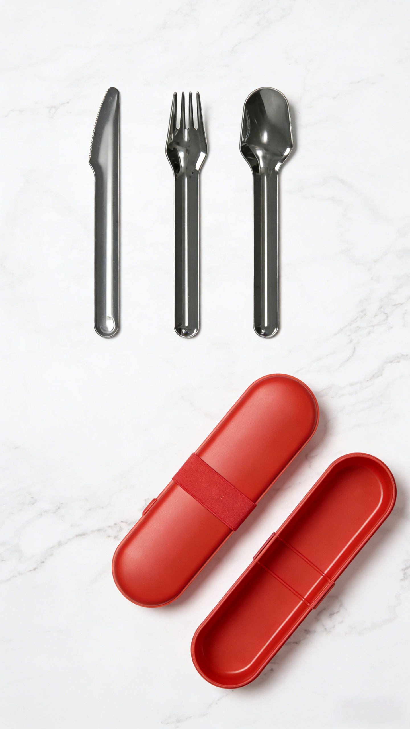 A portable, reusable cutlery set with a case. Made of SS304 stainless steel and PP, it’s compact, easy to carry, and perfect for on-the-go meals.